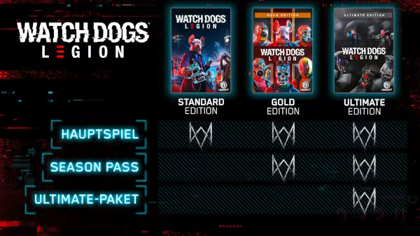 Die Gold Edition enthält den Season Pass: eine Erweiterung mit zwei Episoden, zusätzliche Missionen, vier Helden und die Watch Dogs Complete Edition des ersten Spiels!
