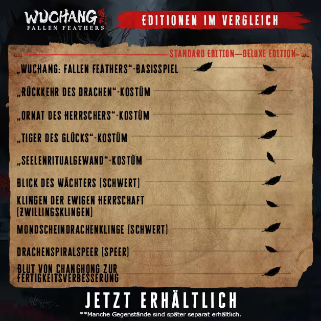 WUCHANG: Fallen Feathers ist ein Soulslike Action-Rollenspiel, das im Land Shu während der dunklen und turbulenten späten Ming-Dynastie spielt, die von kriegerischen Fraktionen und einer mysteriösen Krankheit, die monströse Kreaturen hervorbringt, geplagt wird.