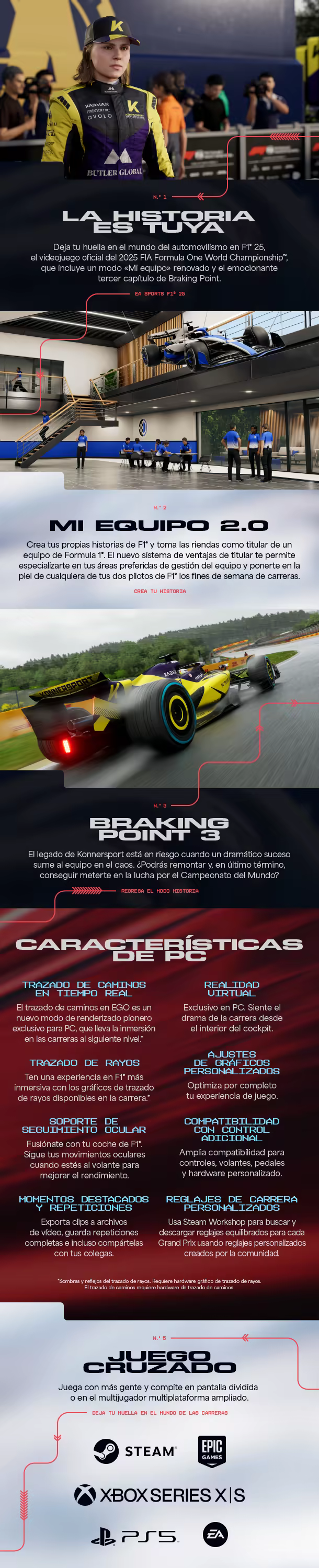 - Nuevos eventos cooperativos en línea: Un modo multijugador totalmente nuevo en F1® World en el que tú y tus amistades competís en equipo contra pilotos de la IA.