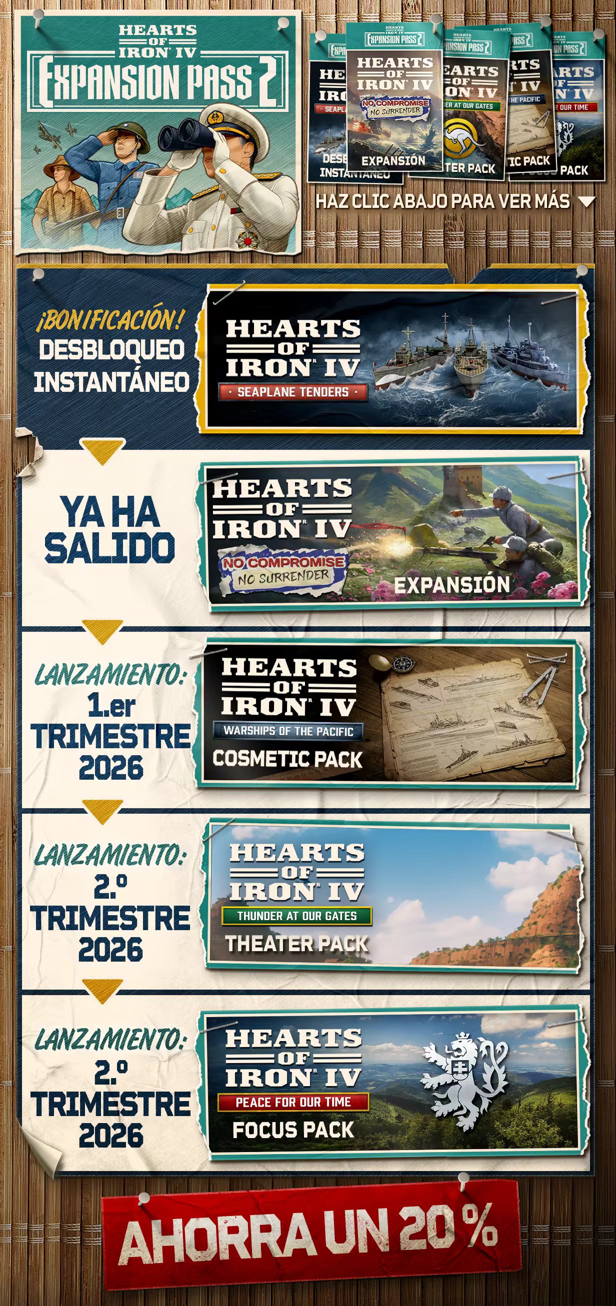 Esta compra incluye el juego principal Hearts of Iron IV y cuatro paquetes de expansión: