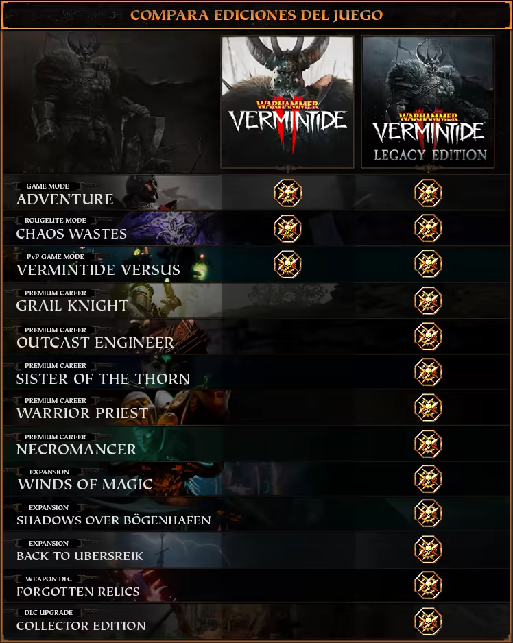 Warhammer: Vermintide 2 es la secuela del aclamado Vermintide. Ha llegado el momento de revisitar este feroz festival de matanzas cooperativo en primera persona con acción cuerpo a cuerpo visceral e innovadora, ambientado en el apocalíptico Fin de los tiempos del mundo azotado por la guerra de Warhammer Fantasy Battles.