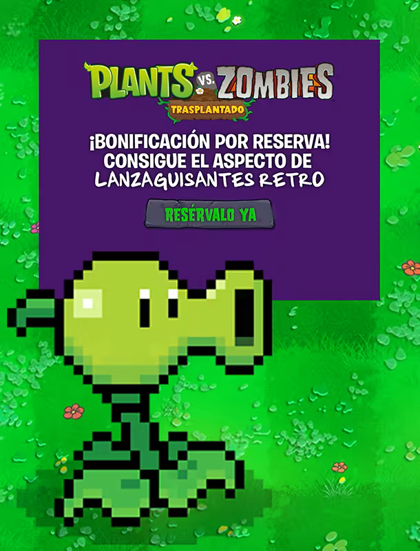 ¡Precompra* Plants vs. Zombies™: Trasplantado para recibir una apariencia de Lanzaguisantes retro!