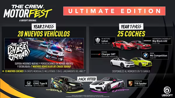 - Pase anual 2, que dispone de la experiencia Chase Squad y hasta 20 vehículos adicionales (7 exclusivos de Chase Squad + otros 13 en forma de entregas mensuales).