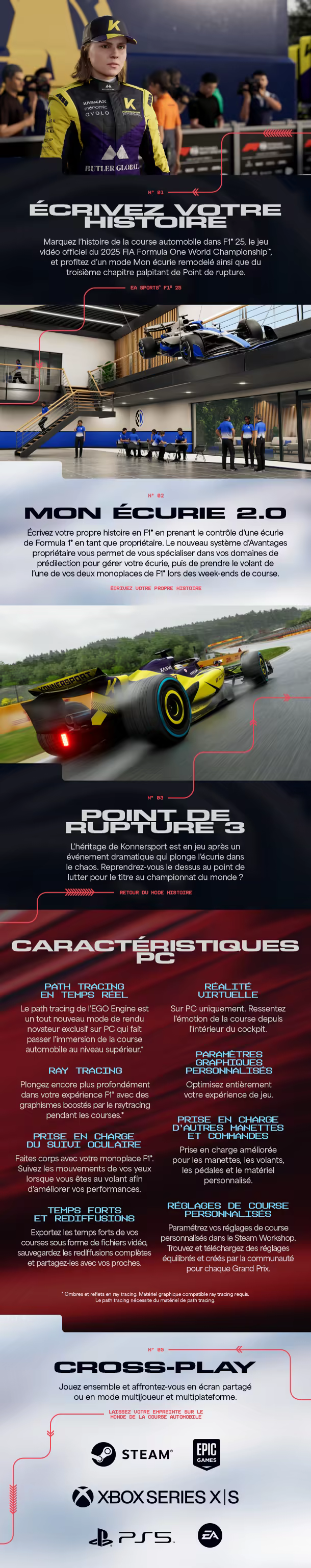 - Et plus : Cinématiques inédites, scènes de podium actualisées et une sélection de circuits en sens inverse vous attendent.