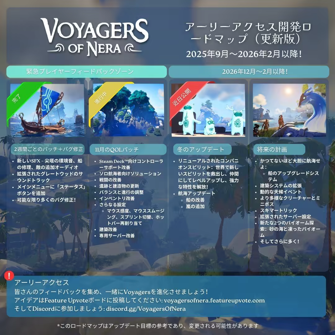 私たちは、すべての素晴らしいゲームには、プレイヤーからのフィードバックが必要不可欠だと信じており、2025年半ばから2週間ごとにプレイテストを行っています。アーリーアクセスは、より多くのプレイヤーからフィードバックを得るチャンスであり、ゲームをより良くしていくために役立つはずですゲーム内アンケート、Steam、Discordを通じて、ぜひ皆様のご意見をお聞かせください。すでにプレイしていただいた皆様には、そのサポートとゲーム改善へのご協力に、改めて心より感謝申し上げます。