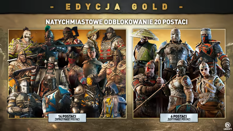 Wybierz Edycję Gold zawierającą sześć dodatkowych postaci o unikalnych stylach gry, aby poprawić swoje wrażenia z rozgrywki w For Honor.