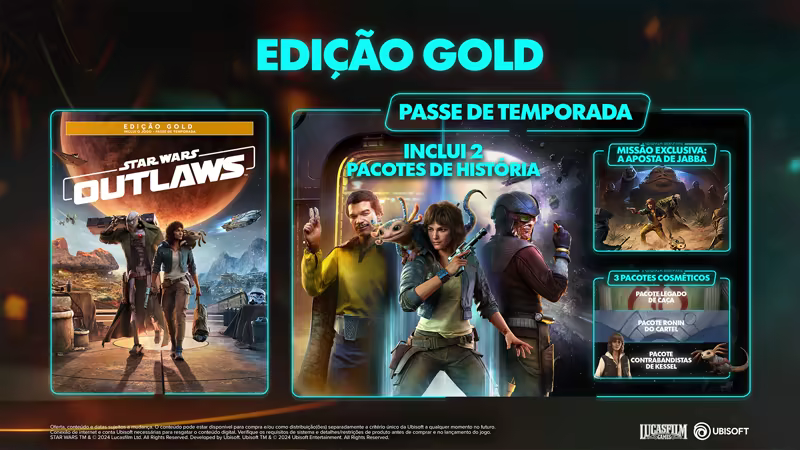 Tenha acesso ao jogo base e ao passe de temporada com a Edição Gold de Star Wars Outlaws, que inclui: