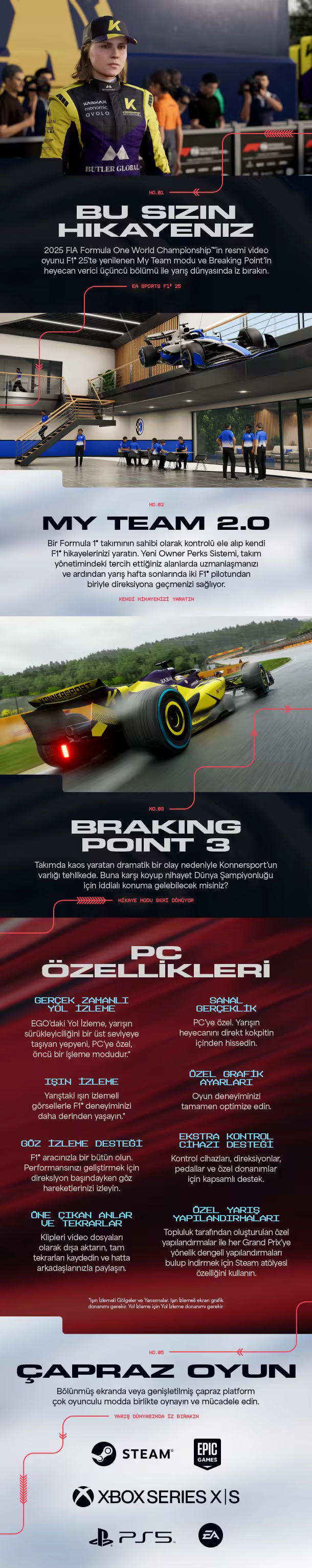 - Yeni Çevrimiçi Ortak Etkinlikler: F1® World’de arkadaşlarınızla birlikte takım olarak YZ pilotlara karşı yarıştığınız yepyeni çok oyunculu mod