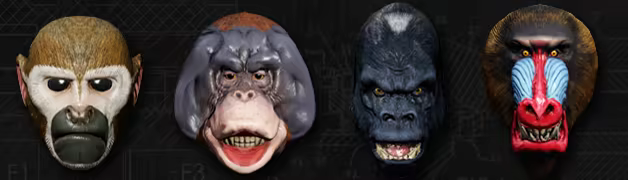• Four new masks – Any career criminal worth his rap sheet will tell you that it is all about first impressions, and there's only one chance to make that first impression. Make sure you send the right signals by using either Rutger the motherfucking orangutan, Clint the black-capped squirrel monkey, John the mandrill or Steven the silverback gorilla.