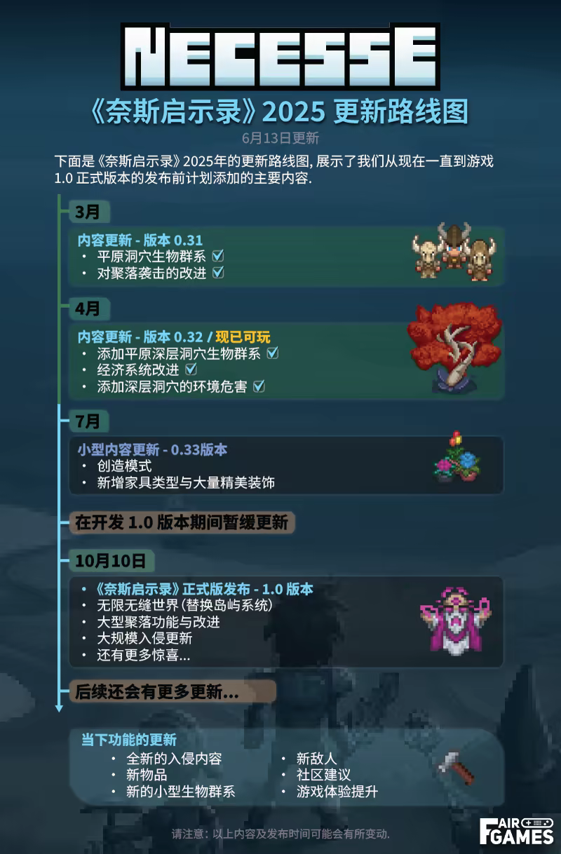 无论是单人游玩,还是与几个朋友一起同乐,甚至是为数百名玩家创建一个专用服务器,《奈斯启示录》的世界及其中的威胁都能提供有意义的挑战。面对分布在各种生物群落中的独特怪物,既可以自由探索,也可以接受特定的任务。你会成为神射手弓兵,近战斗士,还是一名魔法技艺大师?你和朋友是会建立相互独立而又相互竞争的聚居地,还是会集中资源,分工明确,共同建立一个巨大的聚居地?面对强悍的 Boss 时,你是会组成一个经过精心平衡,具有强大协同作用的队伍,还是会努力独吞所有的荣耀?